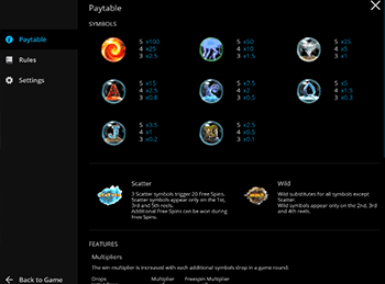 Играть на деньги в вышеуказанный slot лучше всего только после предварительного изучения состава призовых комбинаций и размеров выплачиваемых за них сумм. Для этого достаточно нажать на клавишу ”paytable”, после чего перед вами откроются таблицы с интересующими сведениями. Также необходимо обратить внимание на следующие особенности нового агрегата: